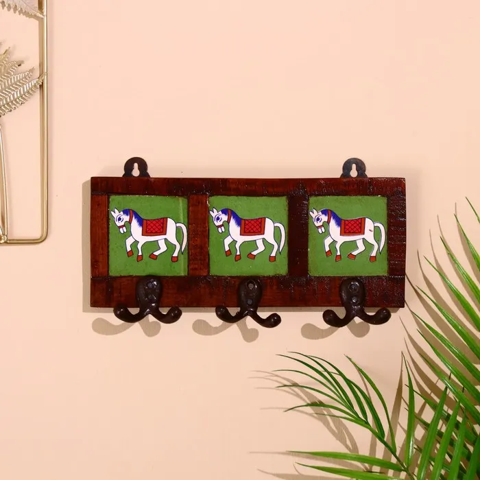 Вешалка «Лошади», 17×4×12 см, дерево, 3 крючка, МИКС