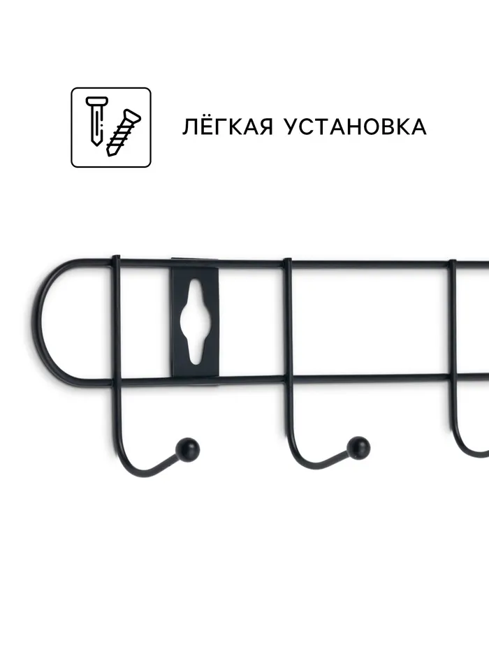 Вешалка настенная «Стандарт», 5 крючков, чёрная