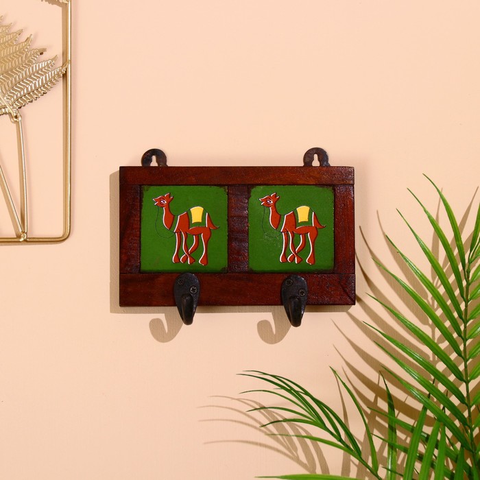 Вешалка настенная «Верблюды», 12×4×10 см, 2 крючка, дерево, МИКС
