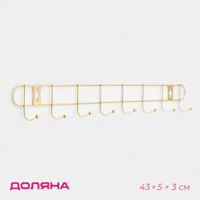 Вешалка настенная Доляна «Лайт», 8 крючков, 43×5×3 см, золотая