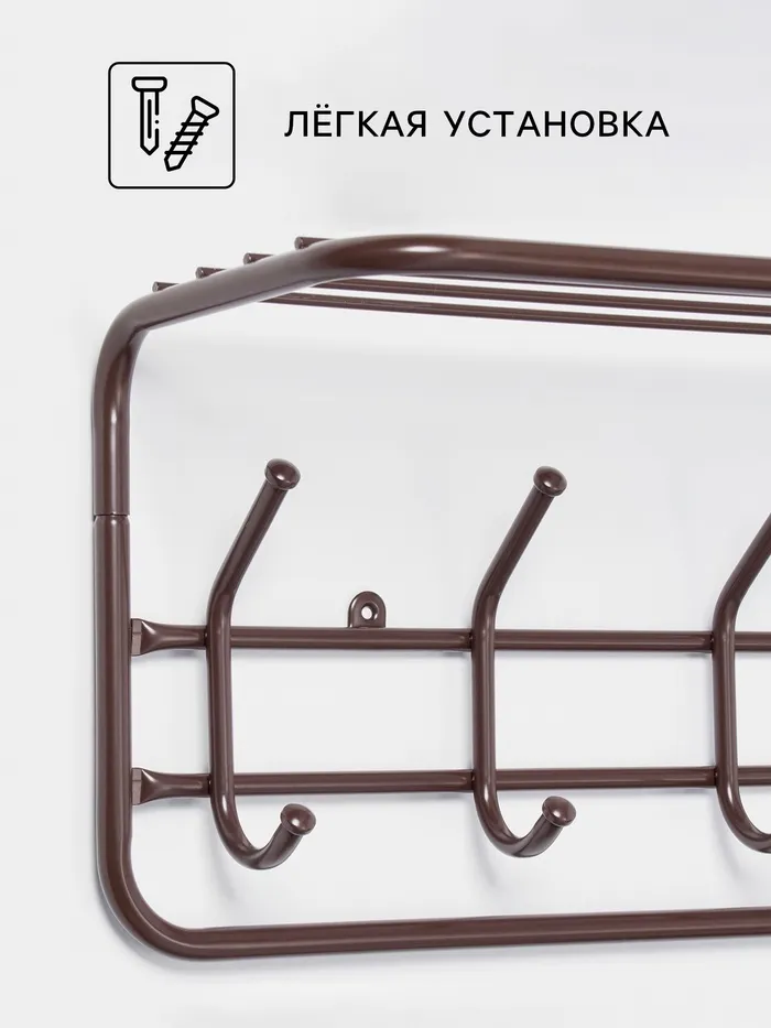 Вешалка настенная, с полкой, 8 крючков, 100 см, коричневая