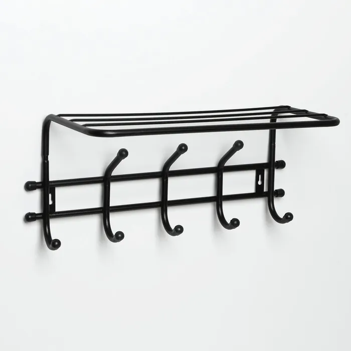 Вешалка настенная с полкой «Комфорт», 5 крючков, 41×20×10 см, чёрная