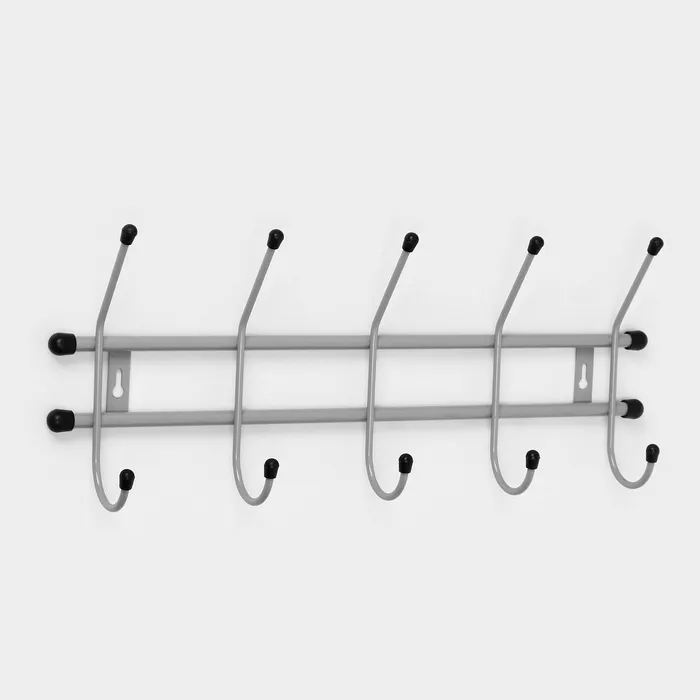 Вешалка настенная на 5 крючков «Стандарт 5», 45×18×8 см, цвет серый металлик