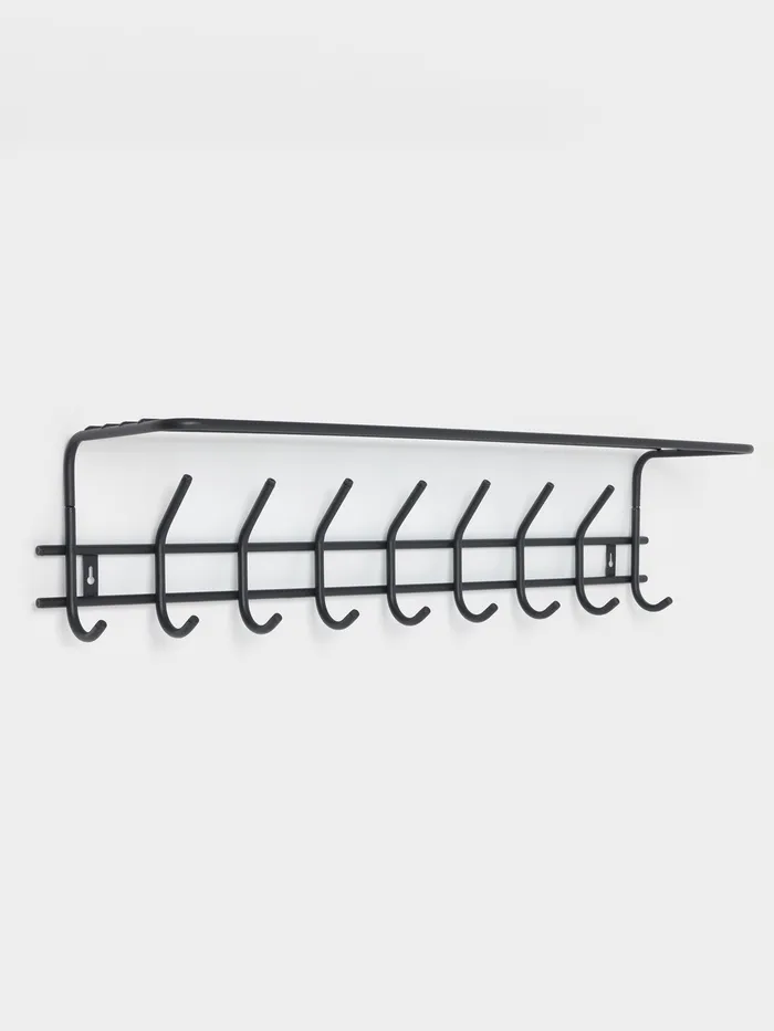 Вешалка настенная с полкой «Комфорт», 9 крючков, чёрная