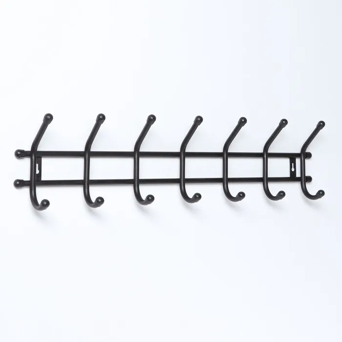 Вешалка настенная на 7 крючков, 69×21,5 см, чёрная