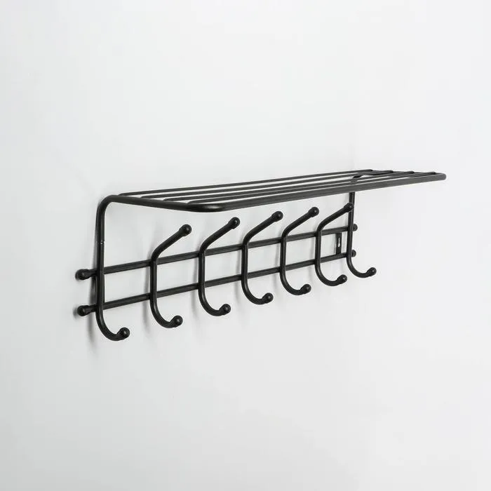 Вешалка настенная с полкой «Комфорт 7», 7 крючков, 61×20×8 см, чёрная
