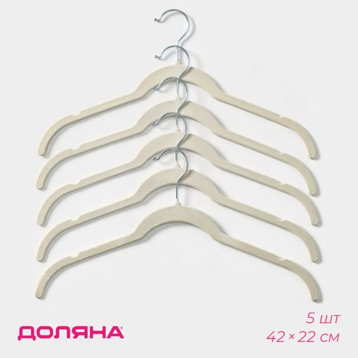 Плечики - вешалки для одежды Доляна, 42×22 см, 5 шт., флокированное покрытие, белые