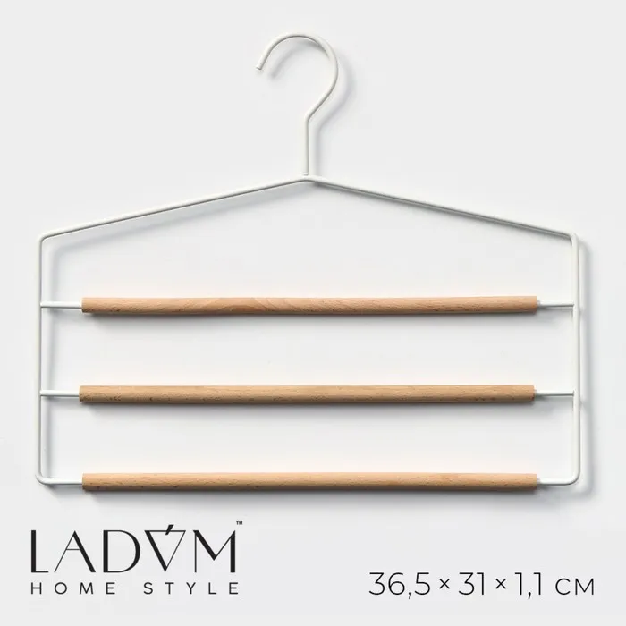 Плечики - вешалка для брюк и юбок LaDо́m Bois, сорт А, многоуровневая, широкие плечики, 38.5×1.2×34 см, дерево