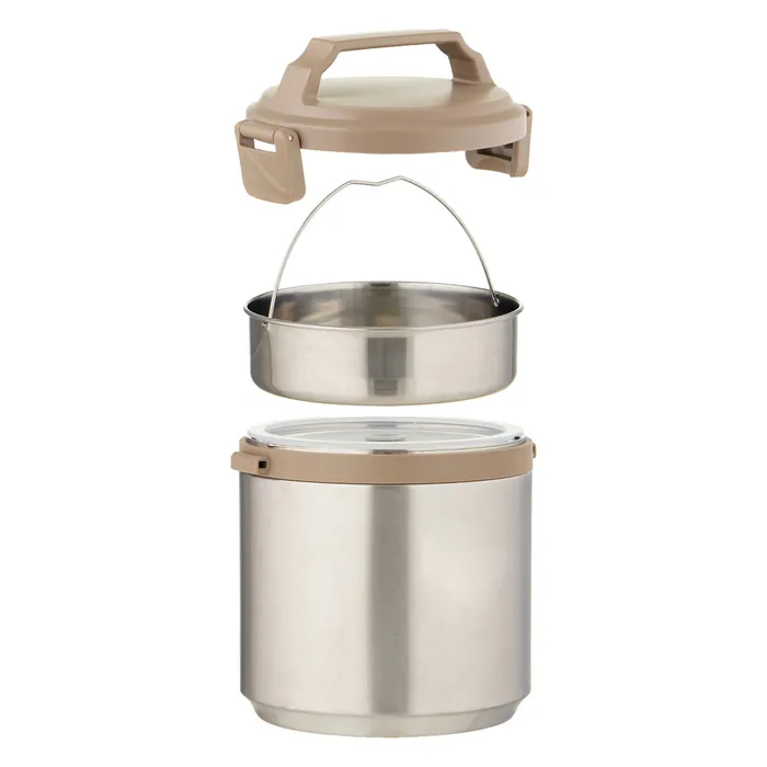 Термос для еды, 1.8 л, сохраняет тепло до 8 ч, нержавеющая сталь, коричневый, бежевый