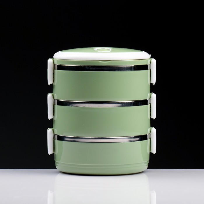 Ланч бокс TAKE IT EASY «Пикник», 2.1 л, 15×15×20 см, 3 отделения, нержавеющая сталь, пластик, зелёный