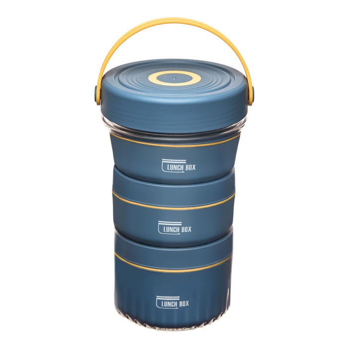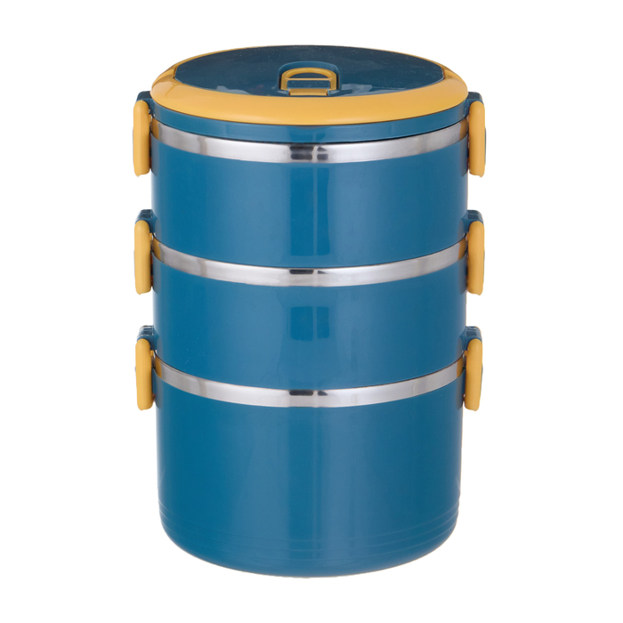 Ланч-бокс, 1.65 л, 3 уровня, сохраняет тепло 2 ч, нержавеющая сталь, синий