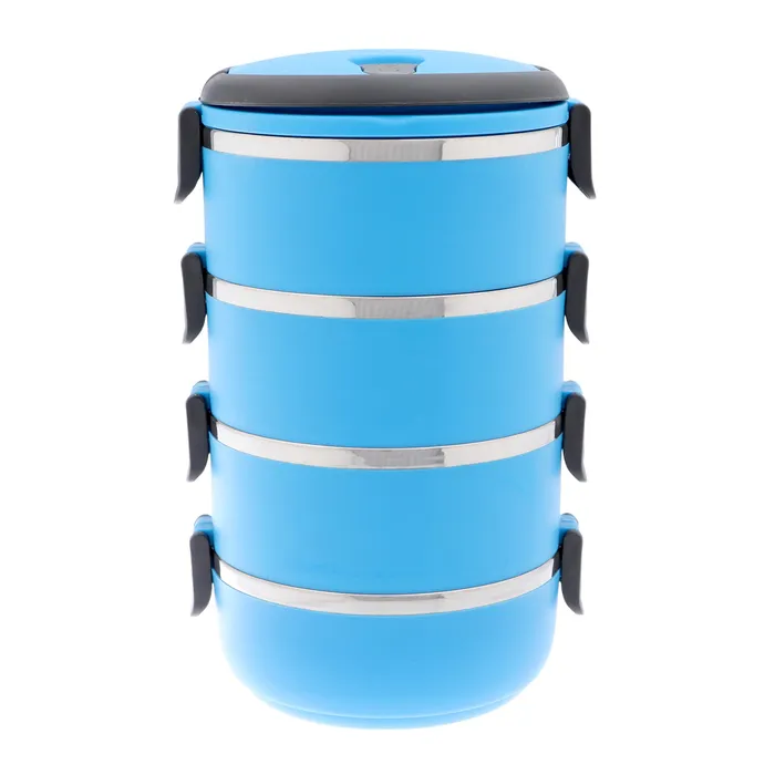 Ланч-бокс, 2 л, 14×26 см, 4 уровня, сохраняет тепло 3 ч, нержавеющая сталь, голубой