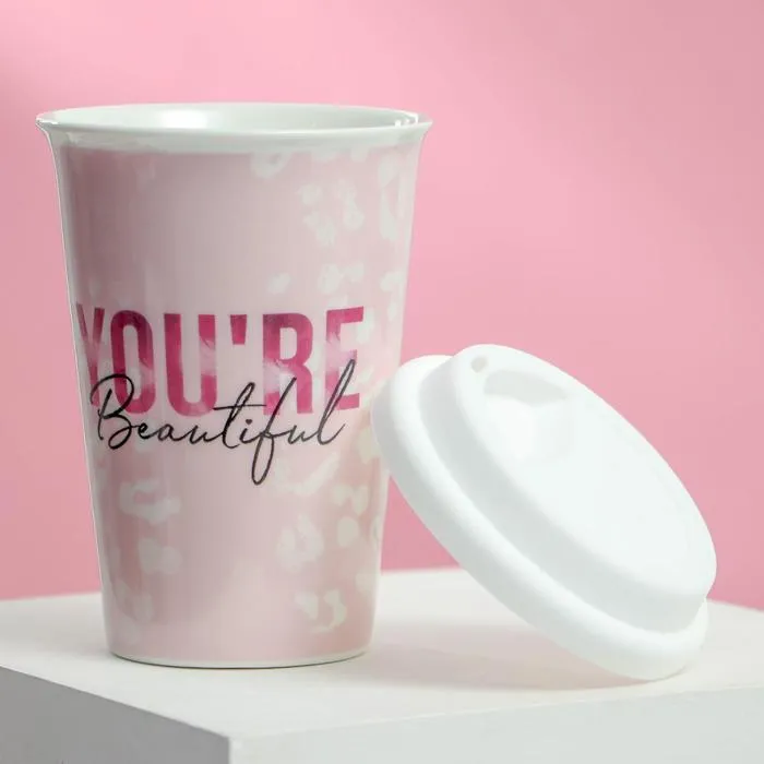 Термостакан керамический с силиконовой крышкой You're beautiful, 300 мл