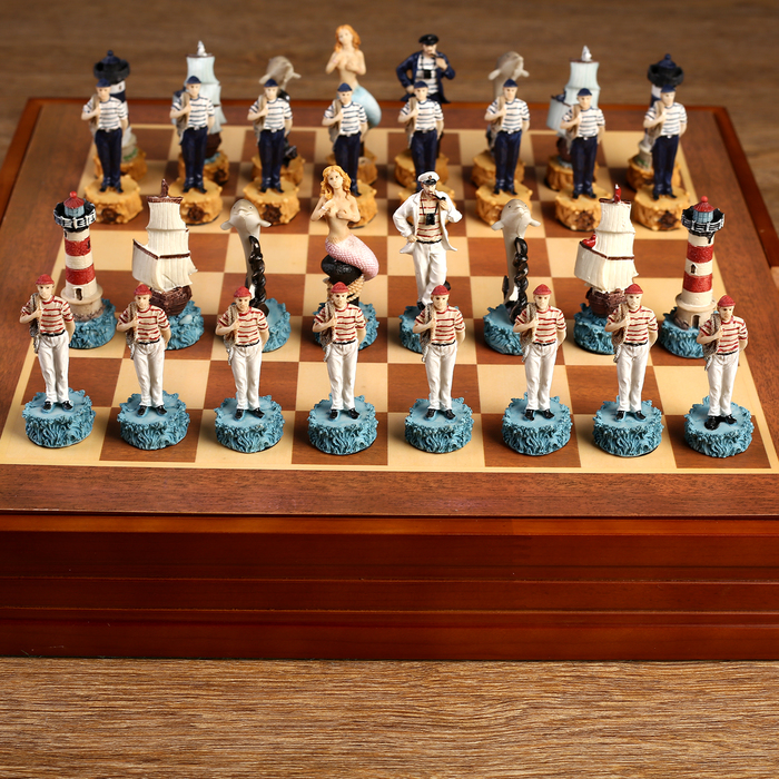 Шахматы сувенирные «Морские истории», король 8 см, пешка 6 см, 36×36 см