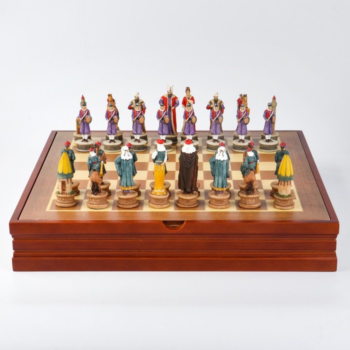 Шахматы подарочные «Монгольское иго», полистоун, доска дерево 36×36 см