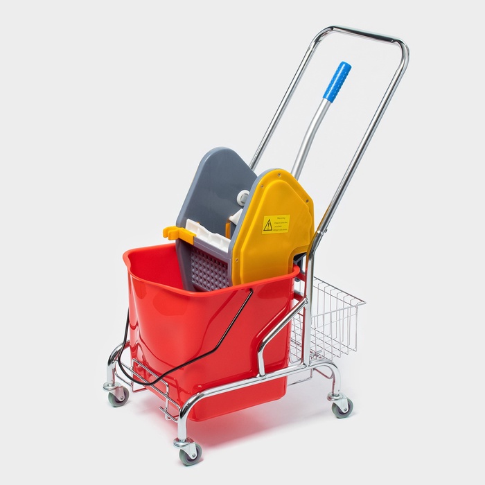 Тележка уборочная одноведерная с отжимом и сеткой, 23 л, хромированная рама