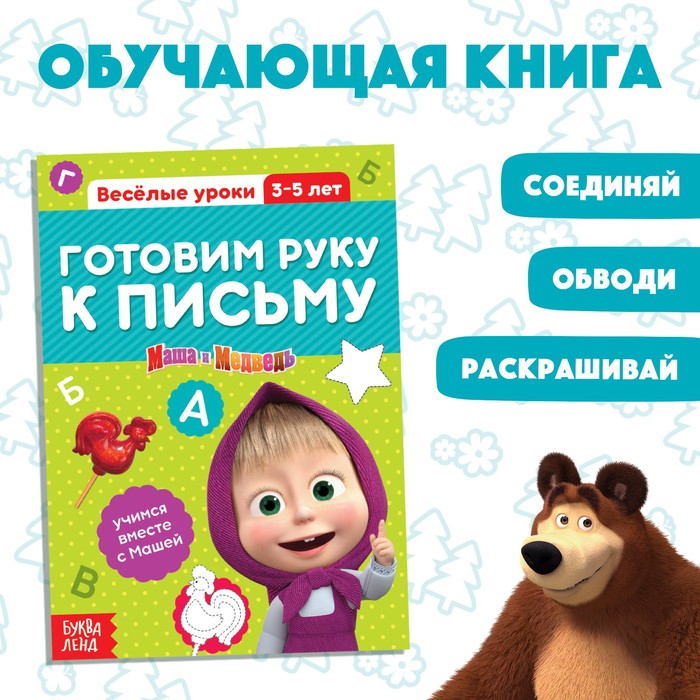 Обучающая книга «Весёлые уроки. Готовим руку к письму», 20 стр., А5, Маша и Медведь