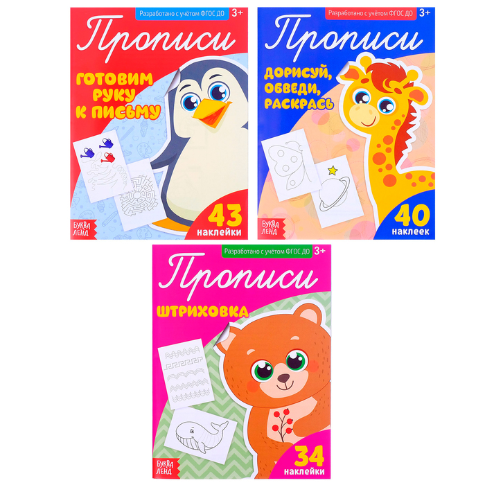 Прописи с наклейками «Тренируем руку», набор 3 шт. по 20 стр.