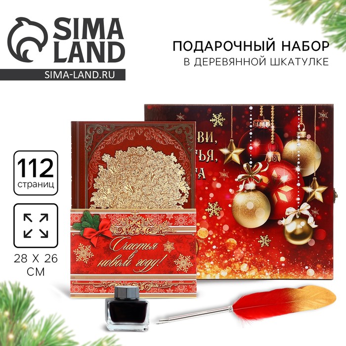 Родословная книга в шкатулке новогодняя «Любви, счастья и уюта», 26 х 8 х 27 см