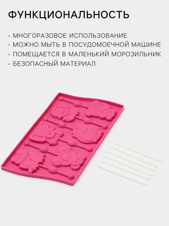 Форма для леденцов Доляна «Звери», силикон, 27.5×16.5 см, 6 ячеек (6.4×6.4), с палочками, МИКС
