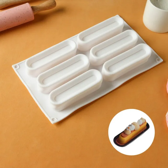 Форма для муссовых десертов и выпечки KONFINETTA «Эклер», 30×17×3 см, 5 ячеек (13.5×3 см), силикон, белая