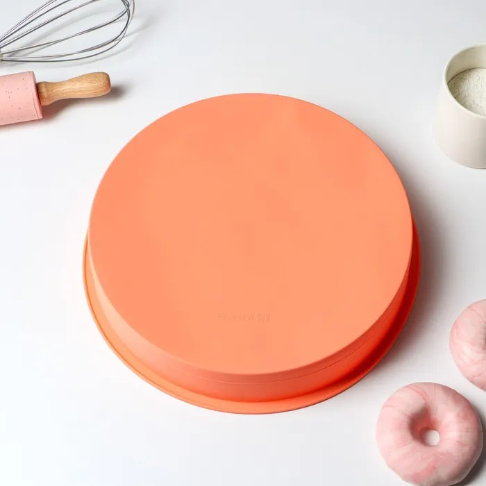 Форма для выпечки Доляна «Круг», силикон, 28×5.5 см, внутренний d=25.5 см, оранжевая