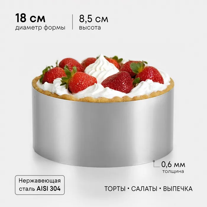 Форма для выпечки и выкладки TAS-PROM «Круг», h=8.5 см, d=18 см, нержавеющая сталь