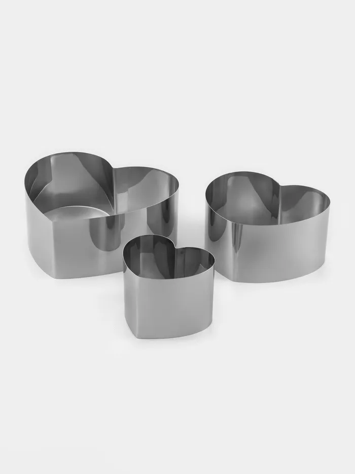 Набор форм для выпечки и выкладки «Сердце», 20×20×8.5 см, нержавеющая сталь, 3 шт.