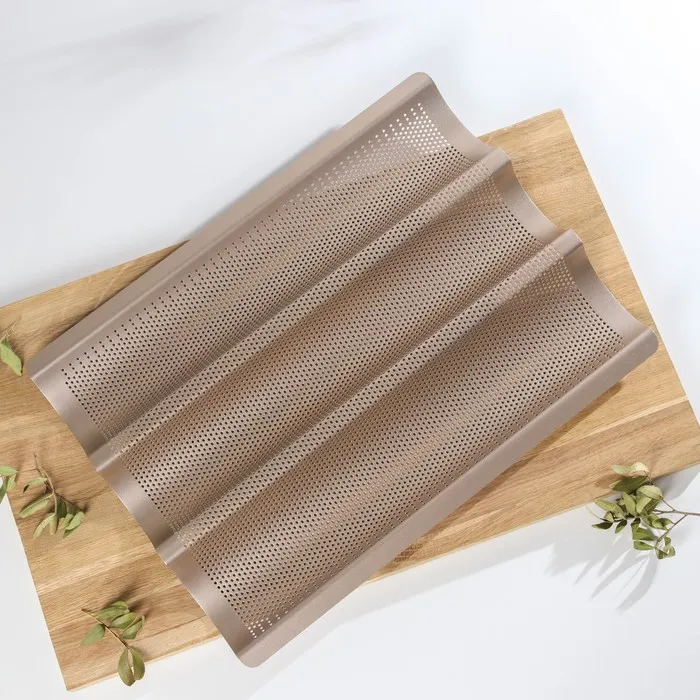 Форма для выпечки багетов Gold перфорированная, 38,5×28,5×3,5 см, антипригарное покрытие, цвет золотой