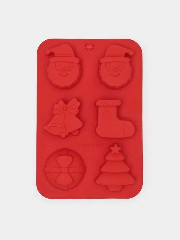 Форма для выпечки Доляна «Новый год. Праздник к нам приходит», силикон, 26×17.5 см, 6 ячеек, красная