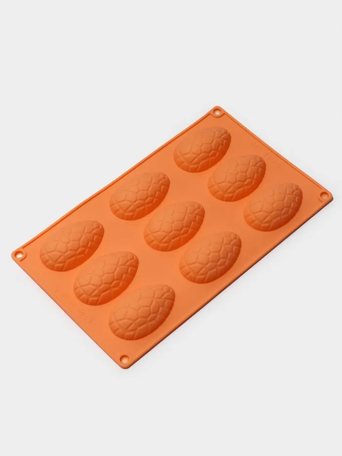 Форма для выпечки Доляна «Пасха. Шоколадное яйцо», силикон, 9 ячеек, 28×16×2 см, оранжевая