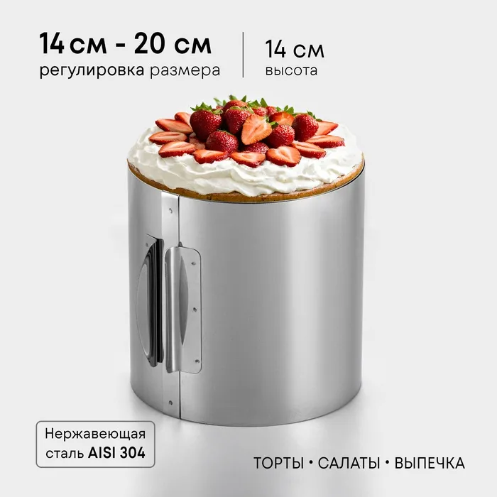 Форма для выпечки и выкладки с регулировкой размера TAS-PROM «Круг», h=14 см, d=14-20 см, нержавеющая сталь