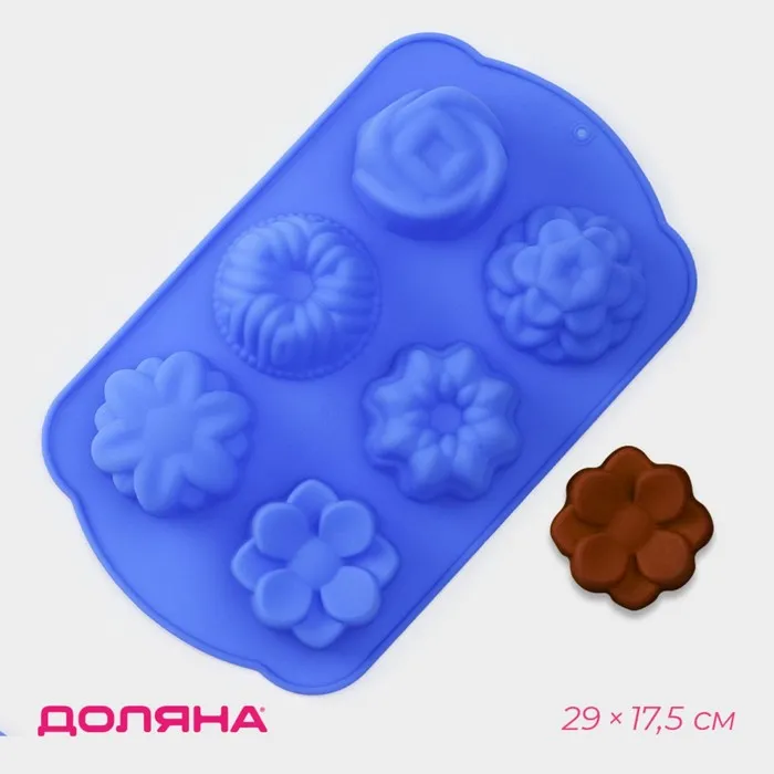 Форма для выпечки Доляна «Немецкий кекс. Цветы», силикон, 29×17.5 см, 6 ячеек, синяя