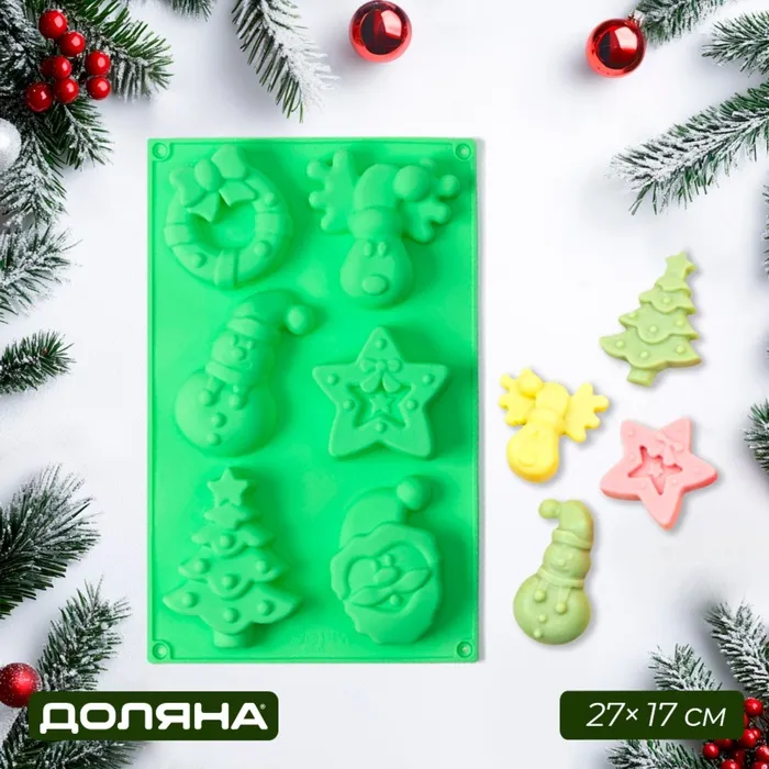 Форма для выпечки Доляна «Новый год», силикон, 27×17×2 см, 6 ячеек, зелёная
