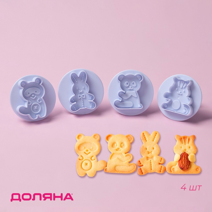 Плунжеры кондитерские Доляна «Мягкая игрушка», набор 4 шт., пластик, МИКС