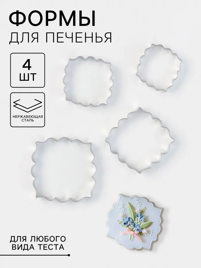Формы для печенья «Рамка с орнаментом», набор 4 шт., нержавеющая сталь, серебристые