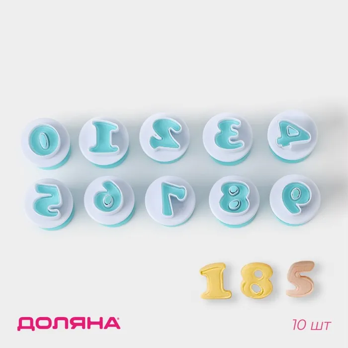 Плунжеры кондитерские Доляна «Цифры», набор 10 шт., пластик, голубые
