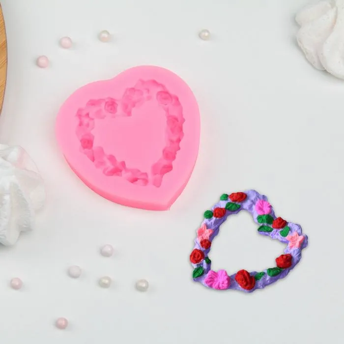 Молд для заливки «Сердце в розочках», силикон, 7×7 см, розовый