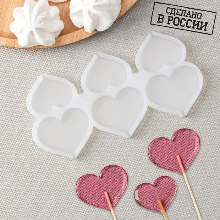 Силиконовый молд для леденцов и шоколада «Сердце», 4 см, 5 см, прозрачный