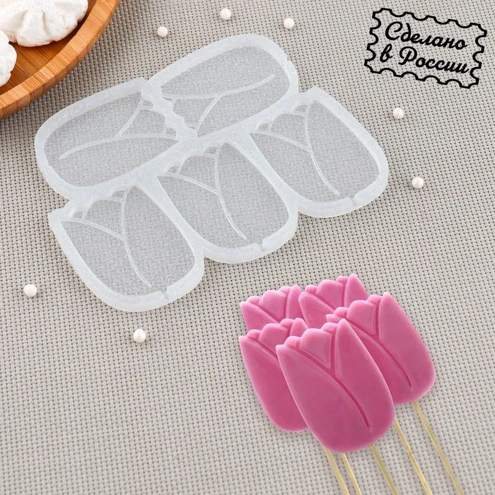 Силиконовый молд для леденцов и шоколада «Тюльпан», 5,5×4,5 см, прозрачный