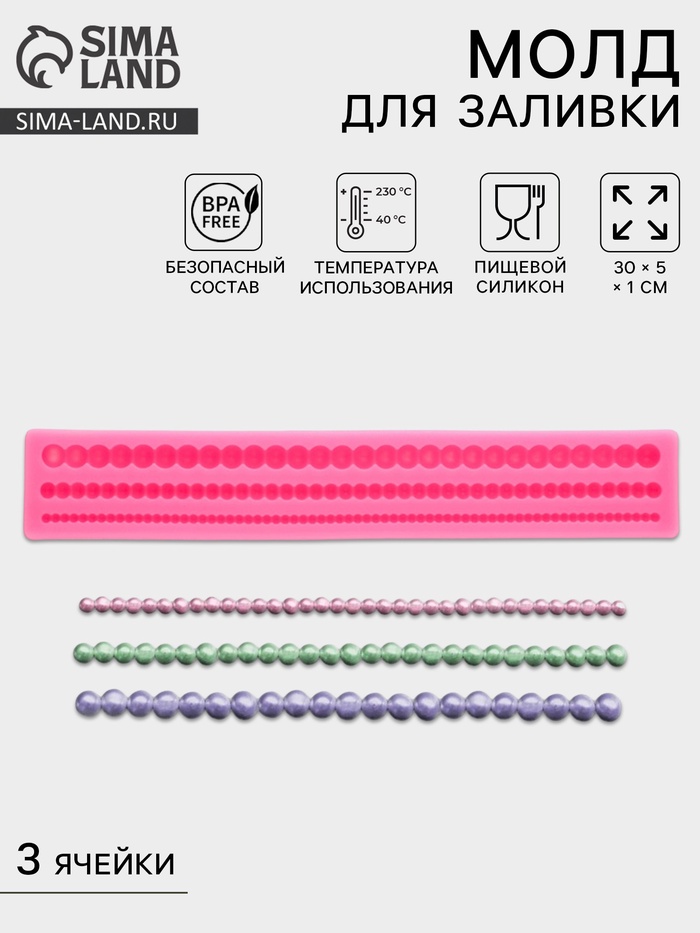 Молд для заливки «Жемчуг», силикон, 30×5×1 см, розовый