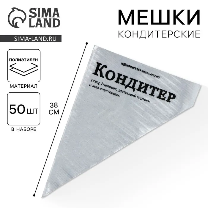 Кондитерские мешки «Кондитер», (L) 38×24 см, 50 шт.