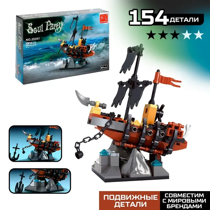 Конструктор Пираты «Фрегат на рифе», 154 детали