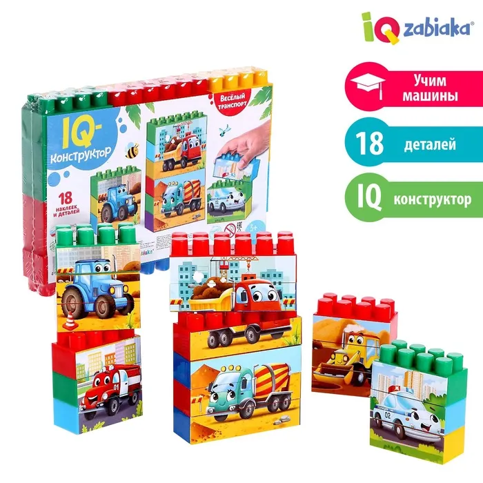 Конструктор пластиковый «Весёлый транспорт», 18 деталей