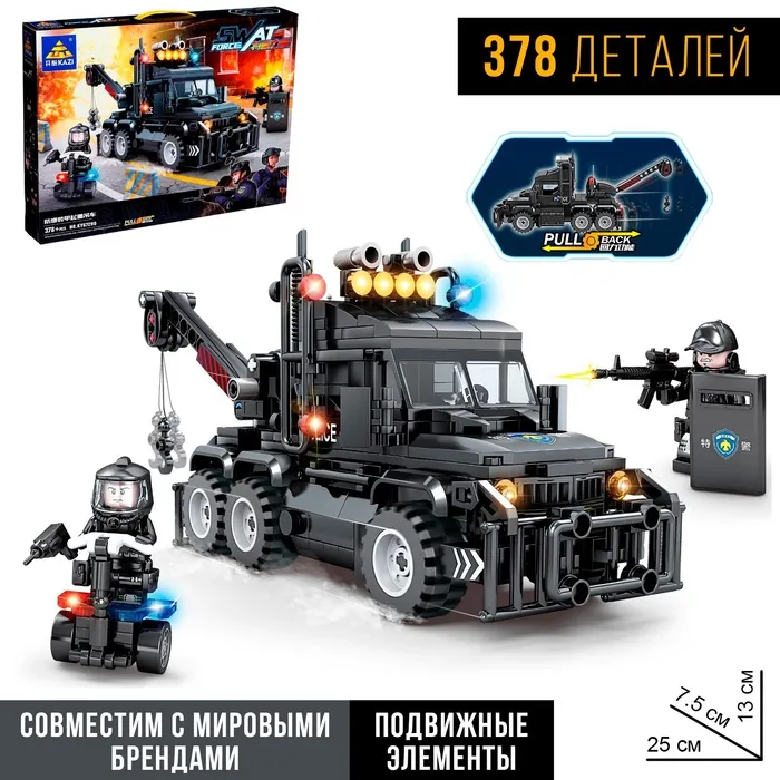 Конструктор спецназ «Трехосный эвакуатор», 378 деталей