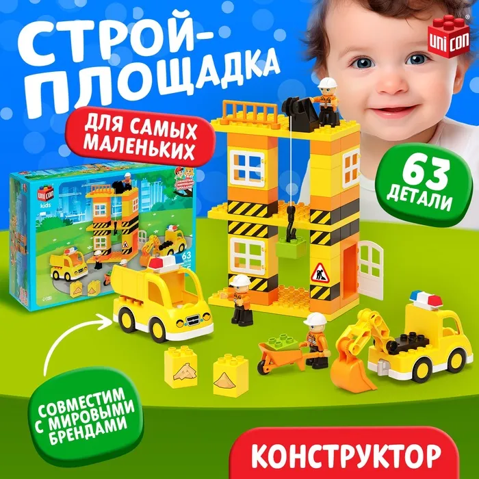 Конструктор «Стройплощадка большая», наклейки в наборе, 63 детали