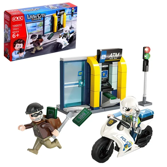 Конструктор блочный для мальчиков Полиция «Погоня на мотоцикле», 106 деталей