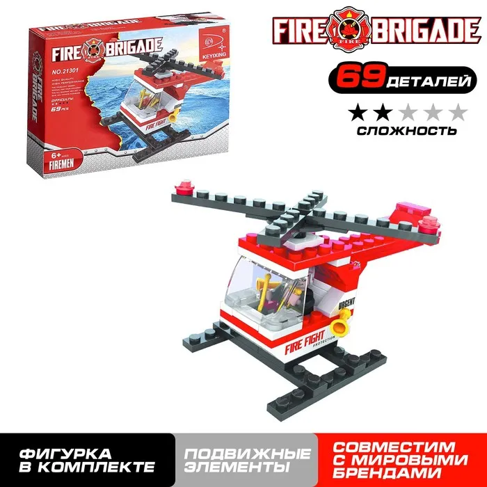 Конструктор Пожарная бригада «Вертолёт», 69 деталей