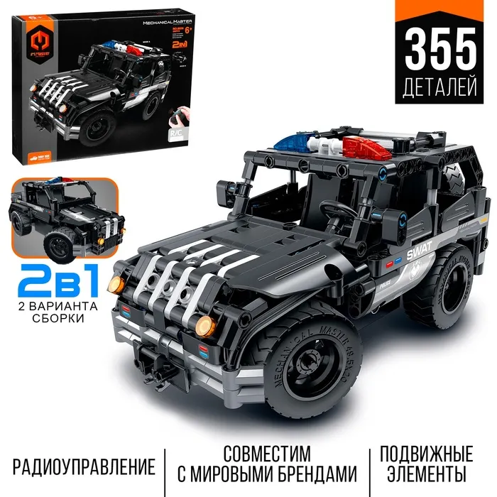 Конструктор радиоуправляемый «Полицейский джип», 2 варианта сборки, 355 деталей