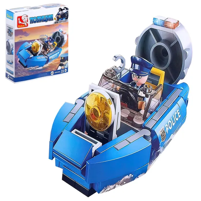 Конструктор блочный для мальчиков Полиция «Полицейский катер», 74 детали